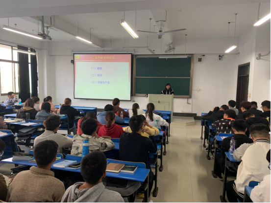 在汇文楼D208举行“党员的基本条件与党员发展程序”党课培训,校党委组织部正处级组织员洪芳老师担任主讲,学院第38期入党积极分子学员到场聆听学习。
