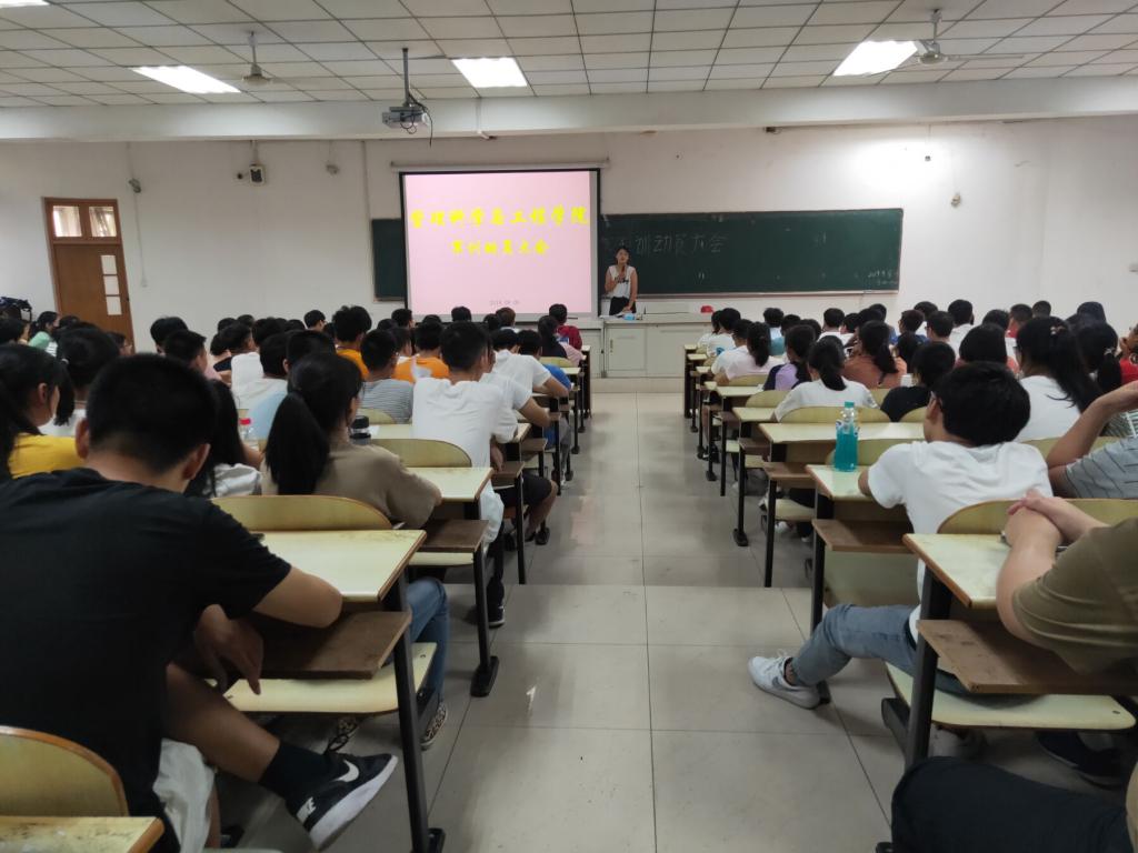 于教三南103举办新生军训动员大会。本次大会由新生辅导员刘瑜主讲,学院2019级全体新生参加。