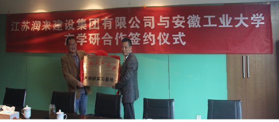 2017年10月31日,U球直播-U球app 党委书记方承武、党委副书记、副院长汪春胜、副院长汪和平、工程造价系主任王付宇等一行五人到访江苏润来建设集团有限公司,与公司管理层进行了深入的交流,就企业和高校合作建立产学研实习基地达成共识,双方领导签署了建立产学研实习基地协议书,并举行了“安徽工业大学产学研实习基地”授牌仪式。