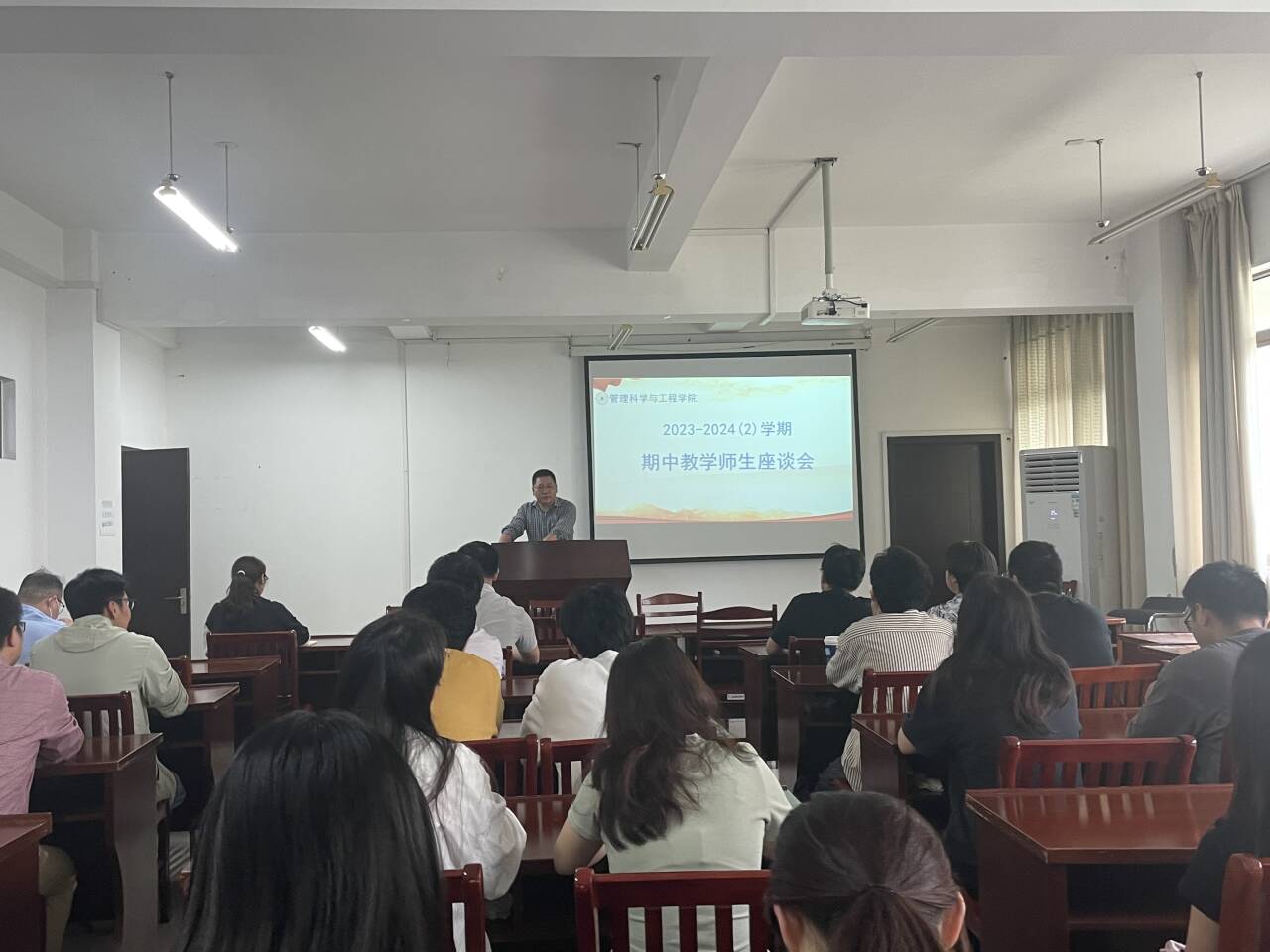 在汇文楼A308召开期中教学师生座谈会。院督导组老师、系室教师代表、各专业班级的30余名同学参加了座谈,会议由张洪亮副院长主持。
