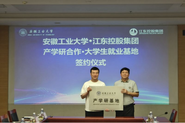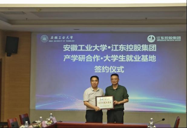 产学研合作协议》,进行“安徽工业大学大学生就业基地”和“安徽工业大学产学研合作基地”授牌。曾杰向张邦彦颁发安徽工业大学就业创业领航导师证书。