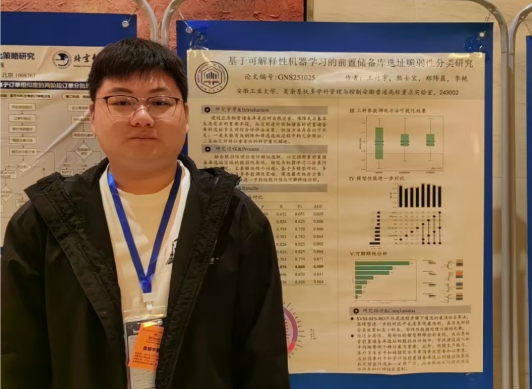 我校运筹优化与智能决策科研创新团队师生深度参与了此次学术盛会,分别做了题为《Dynamic ensemble earthquake casualty prediction model based on deep reinforcement learning》《考虑小团体行为和客流疏导的高铁站应急疏散仿真研究》《考虑物资损毁与需求紧迫度的应急物资调度模型与算法研究》《基于可解释性机器学习的前置储备库选址脆弱性分类研究》的现场口头报告和墙展报告,团队负责人王付宇教授获中国仿真学会智能仿真优化与调度专委会先进工作者。