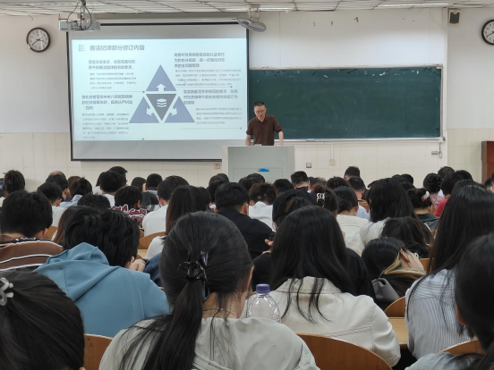 5月13日下午,U球直播 党委书记王军在秀山校区东教一阶201教室为全院教师党员、学生党员上党纪学习教育专题党课。