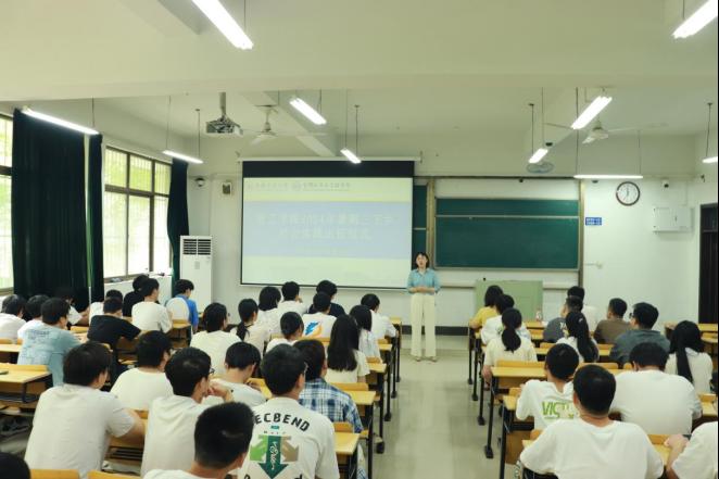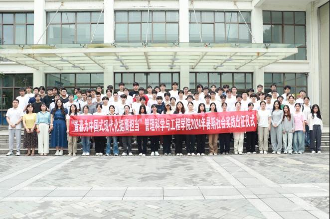 在东教D105举办2024年暑期大学生社会实践出征仪式。仪式由院团委书记赵玉婷主持,院党委副书记、副院长、纪委书记赵颖,院团委副书记曹宇,社会实践队员代表参加活动。